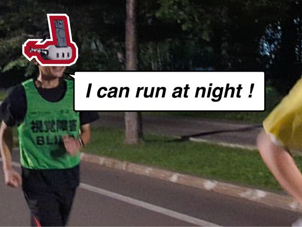 本研究では,Augmented Reality(AR)技術を用いて弱視ランナーの視覚を補助し,夜間の伴走ランニングを可能にするシステム「RunSight」を提案する.視覚障がいをもつ弱視ランナーにとって,夜間の暗い環境下では,前方を走る伴走ランナーを残存視力で追走する「掛け声式伴走ランニング」への参加が困難となる.これは,暗所では視界が著しく低下し,伴走ランナーの位置や周囲環境の把握が困難になるためである.RunSightは,ヘッドマウントディスプレイを通じて障害物や伴走ランナーの位置を視覚的に強調表示することで夜間の弱視走行を支援する.弱視ランナー8名を対象に行った試走では,AR支援なしでは全員が夜間に掛け声式伴走ランニングを実施できなかった一方,RunSightのAR支援を利用した条件では全員が1km以上の夜間走行に成功した(平均3.44km).