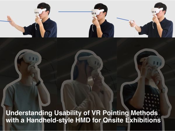 手持ち型ヘッドマウントディスプレイ(HMD)は,その手軽さから展示会での利用が拡大しているが,VRに不慣れな来場者に適したポインティング手法の明確な指針は示されていなかった.本研究は,手持ち型HMDにおける状況に応じた適切なポインティング手法を明らかにすることを目的とする.まず,手持ち型HMDを利用した展示の実践者への半構造化インタビュー調査(N=8)から,利用実態と課題を明らかにした.続いて,この知見に基づき7種類のポインティング手法を実装し,VR初心者(N=28)を対象にユーザビリティ調査を実施した.その結果,実際の展示で利用されていたハンドジェスチャの利用は推奨できないことが示唆された.対照的に,視線滞留による選択は,エラーが少なく,高いユーザビリティで自信のある入力を実現し,来場者のVR経験を問わない安定した操作を提供することが明らかになった.これらの結果をもとに,手持ち型HMDのポインティング手法を設計するためのガイドラインを作成した.